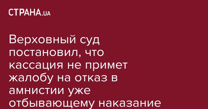 Большая Палата Верховного Суда при рассмотрении дела № 738/1482/16-к пришла к выводу, что отказ в применении амнистии нельзя обжаловать в кассационном порядке. Об этом пишет "Юрлига".