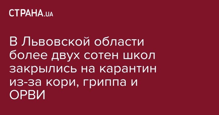Во Львовской области закрылись на карантин 231 школы в связи с увеличением количества случаев заболевания корью и острыми респираторно-вирусными инфекциями (ОРВИ) среди учащихся по информации на 12 февраля. Соответствующее заявление сделала директор департамента образования и науки Львовской областной государственной администрации Любомира Мандзий, передают Українські Новини