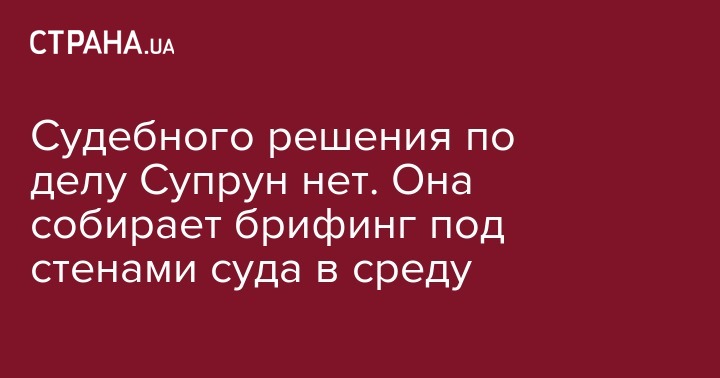 Судебного решения по делу Супрун нет. Она собирает брифинг под стенами суда в среду