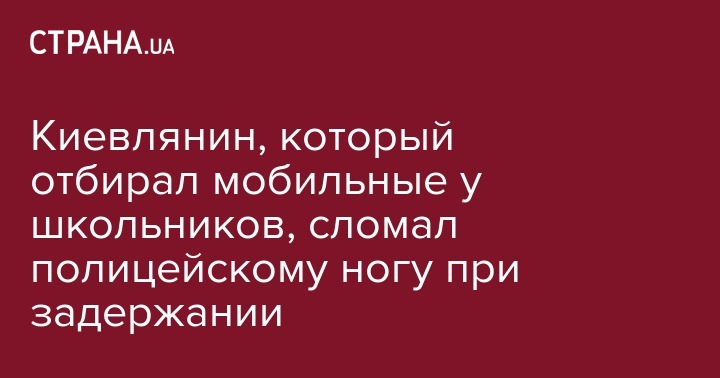 Преступник грабил своих жертв по дороге в школу. Он следил за детьми и отбирал мобильные. Правоохранители установили злоумышленника - им оказался 22-летний киевлянин, ранее судимый за совершение грабежей. Когда мужчина заметил копов, то начал убегать. При этом он толкнул полицейского, который пытался его задержать, в результате чего тот упал и получил перелом ноги.