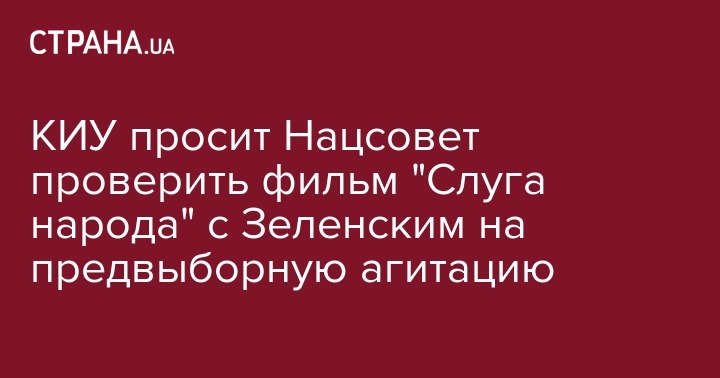 Общественная организация "Комитет избирателей Украины" (КИУ) просит Нацсовет по вопросам телевидения и радиовещания проверить фильм "Слуга народа" и другие видеофильмы и авторские программы с ведущими-кандидатами в президенты Украины на предмет соблюдения избирательного законодательства.