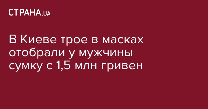 Вечером 16 июня в Шевченковском районе Киева трое неизвестных лиц отобрали у 37-летнего мужчины сумку с 1,5 млн грн. Об этом сообщает ГУ Национальной полиции в Киеве.