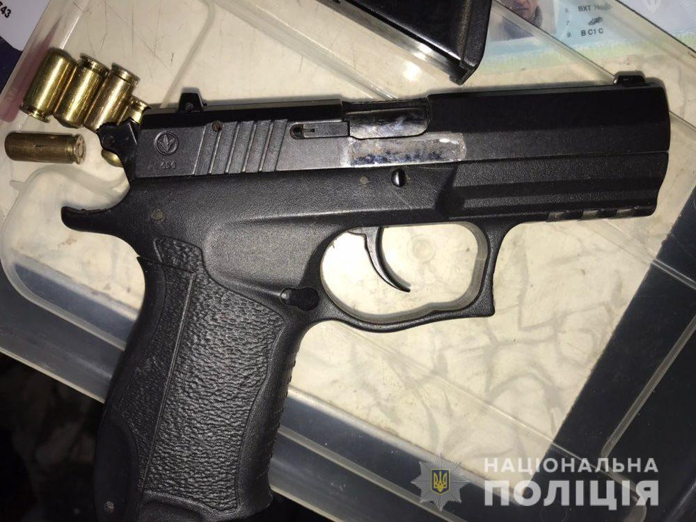 При проведении неотложного обыска по месту жительства нападающего, работники полиции обнаружили и изъяли пистолет "Форт-17" с вытертым номером, 12 патронов, женские сумки, деньги в сумме 2100 гривен, 100 долларов, банковскую карточку и нож. Также изъяли социальную карточку на имя потерпевшей женщины, которую мужчина пытался сжечь.