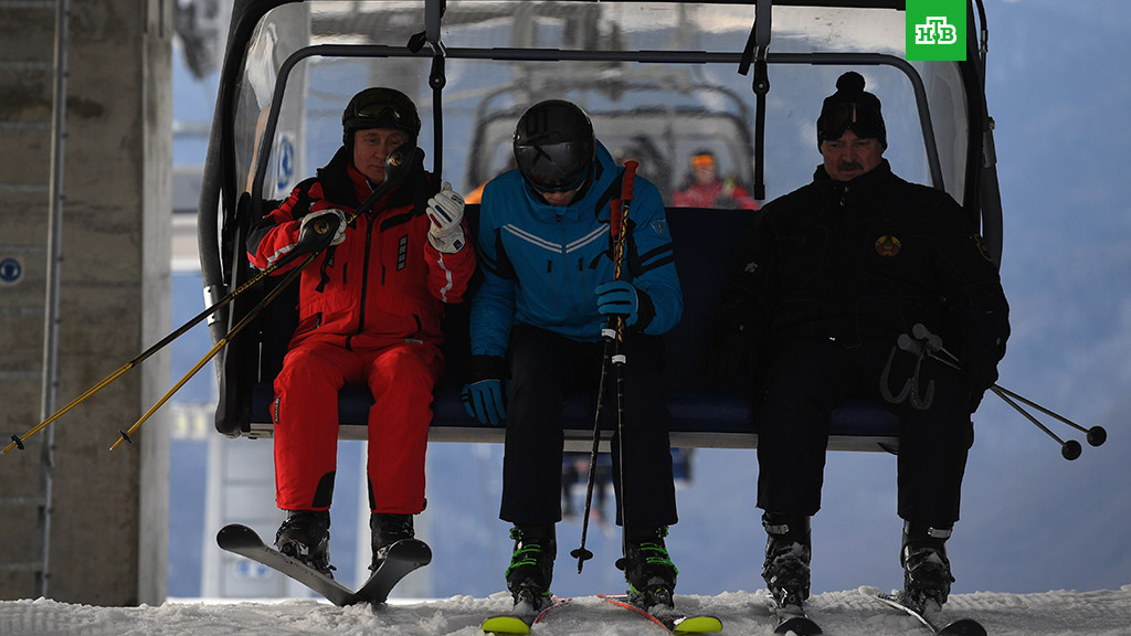 В первый день переговоров в Сочи президенты России и Беларуси Владимир Путин и Александр Лукашенко вместе покатались на лыжах, сообщает РИА "Новости".
