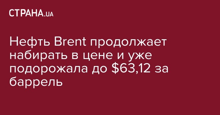Нефть Brent продолжает набирать в цене и уже подорожала до $63,12 за баррель