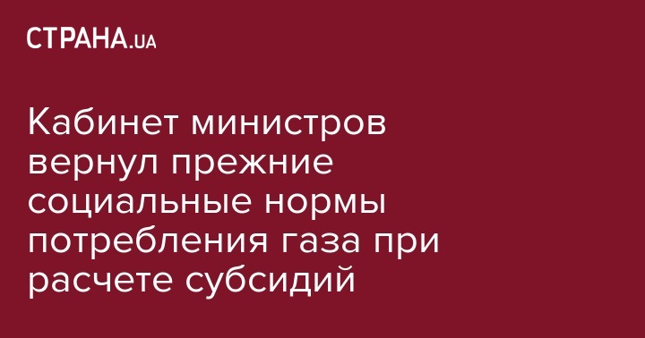 Кабинет министров вернул прежние социальные нормы потребления газа при расчете субсидий