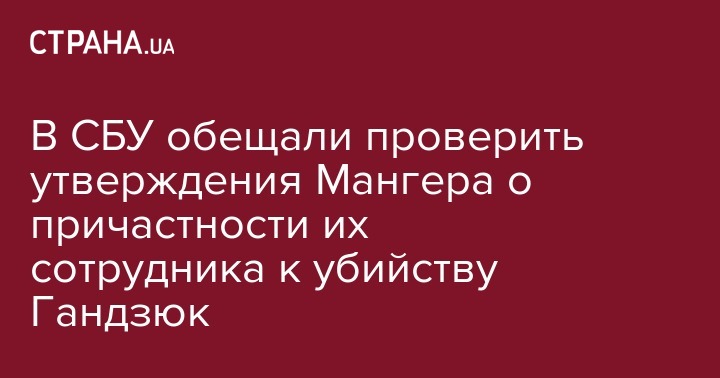 В СБУ обещали проверить утверждения Мангера о причастности их сотрудника к убийству Гандзюк