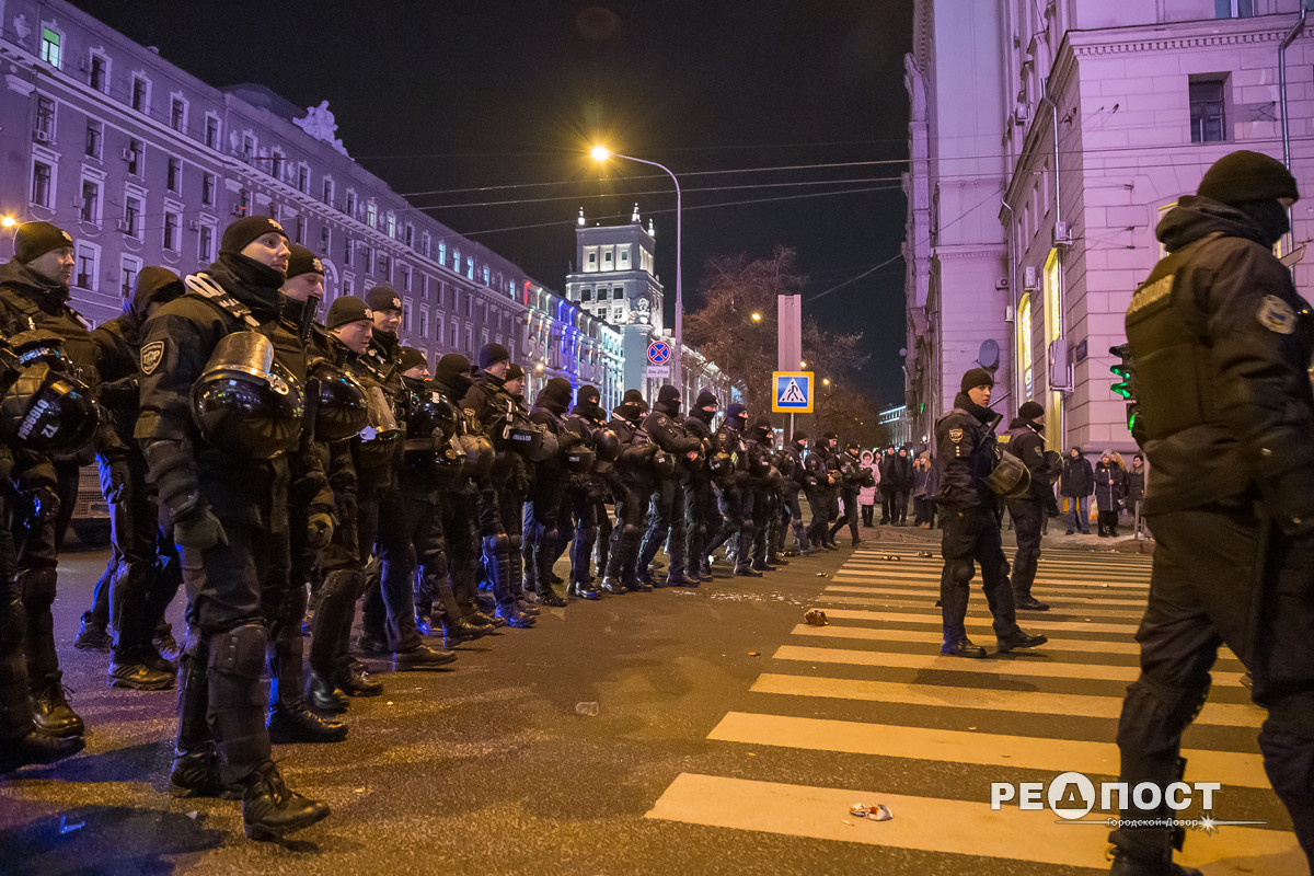 Поэтому марш прошел в сопровождении правоохранителей. Для фанов выделили правую полосу улицы Сумской и Московского проспекта - до стадиона "Металлист".