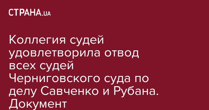 Коллегия судей удовлетворила отвод всех судей Черниговского суда по делу Савченко и Рубана. Документ
