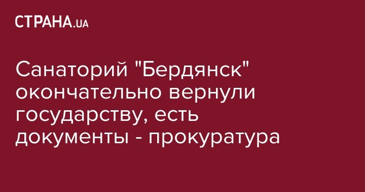 "Решением хозяйственного суда Запорожской области был удовлетворен иск прокуратуры области и истребовані из незаконного владения ЧАО "Приазовкурорт" в собственность государства здания бывшего санатория "Бердянск" по адресам: бульвар Тенистый, 9, 12 и 18 в городе Бердянск, общей площадью 2534 кв.м", - добавили в прокуратуре.