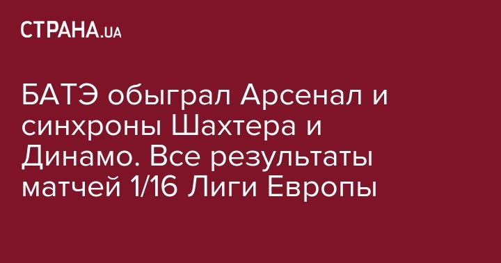 БАТЭ обыграл Арсенал и синхроны Шахтера и Динамо. Все результаты матчей 1/16 Лиги Европы