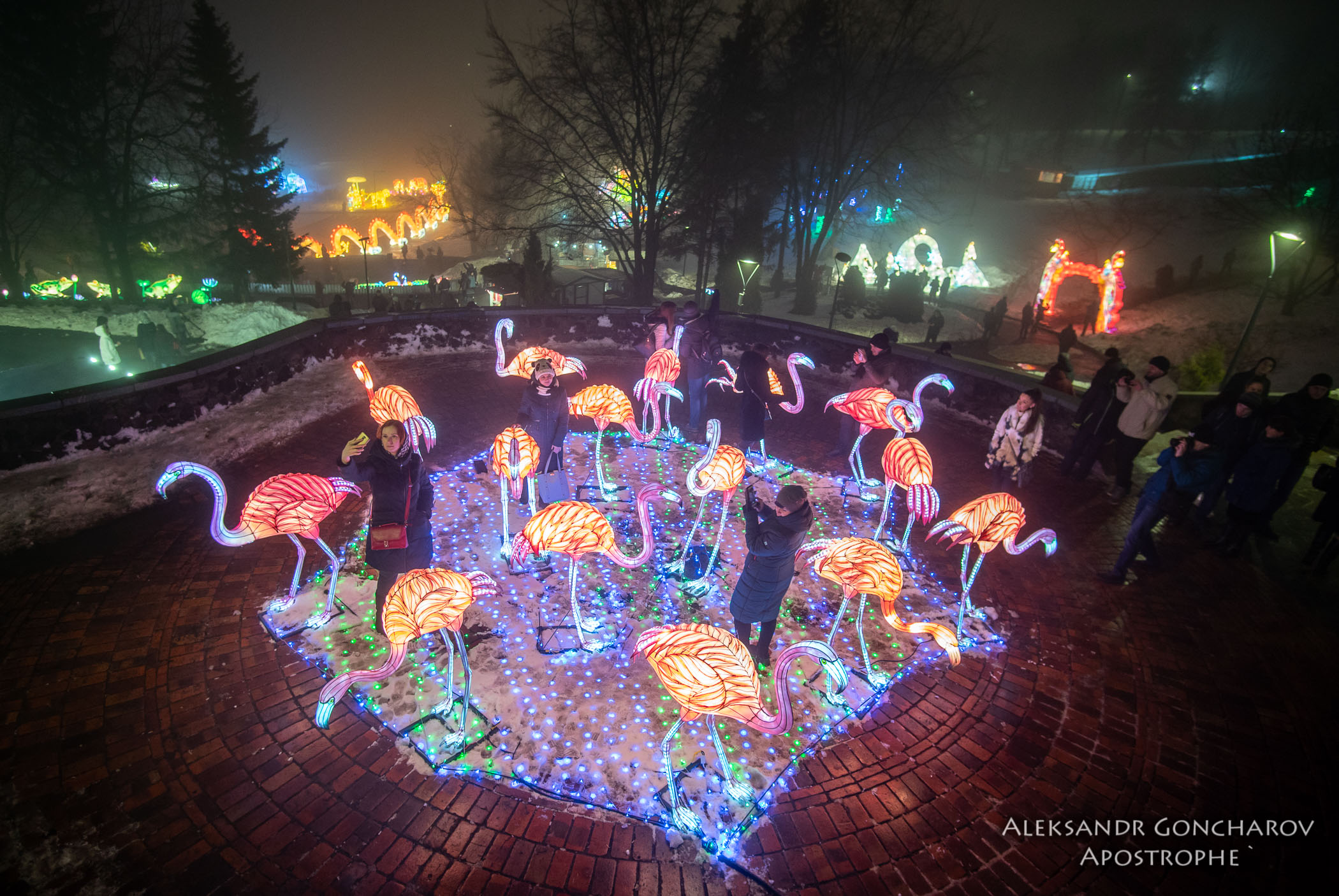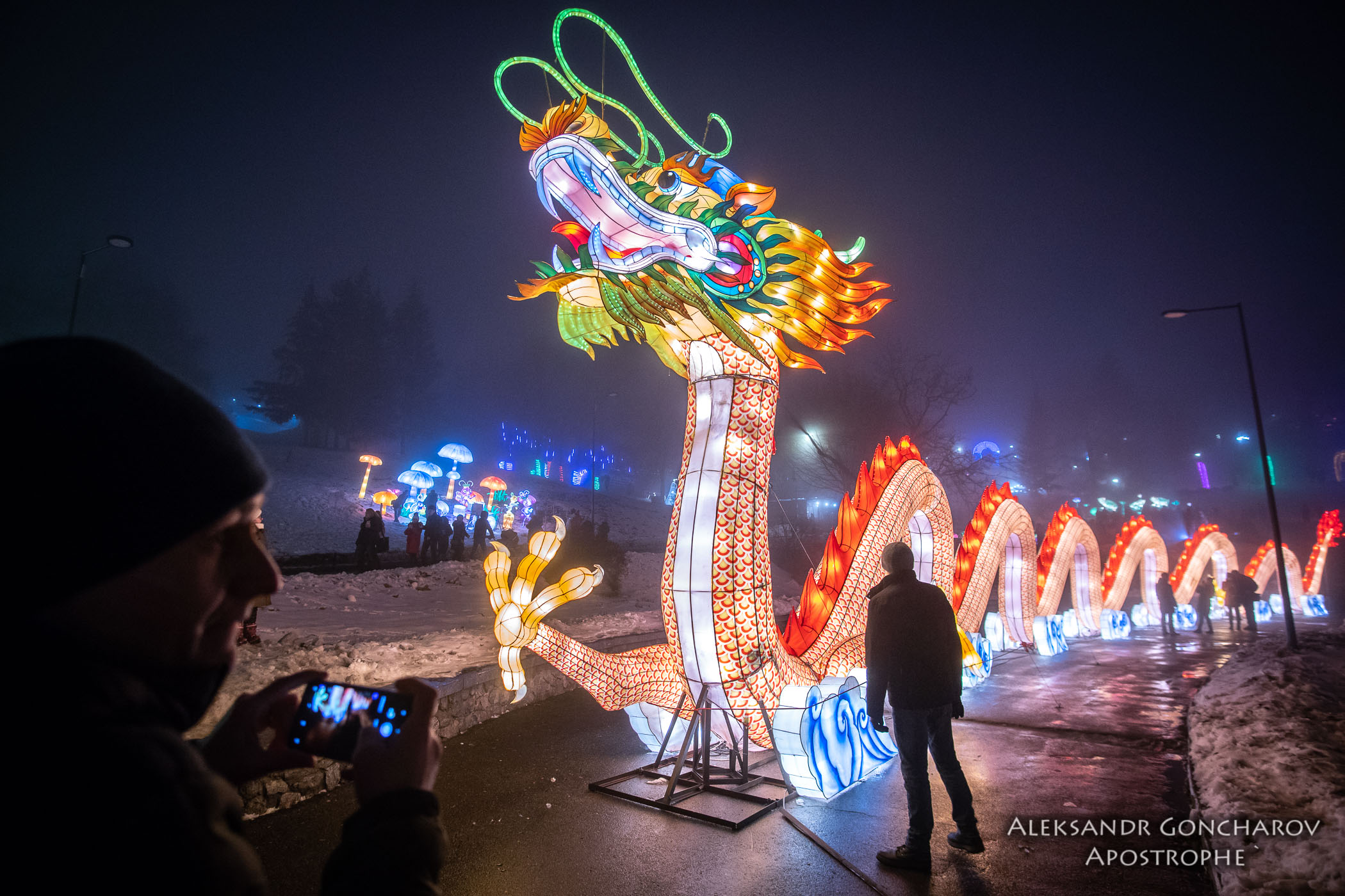 Посетителей восхитили масштабные световые инсталляции, каждая из которых символизирует древнюю народную сказку или легенду. Например, здесь есть сады панд и фламинго, карета Золушки, лес с оленями и многое другое. Центральным экспонатом выставки стал 40-метровый светящийся дракон.