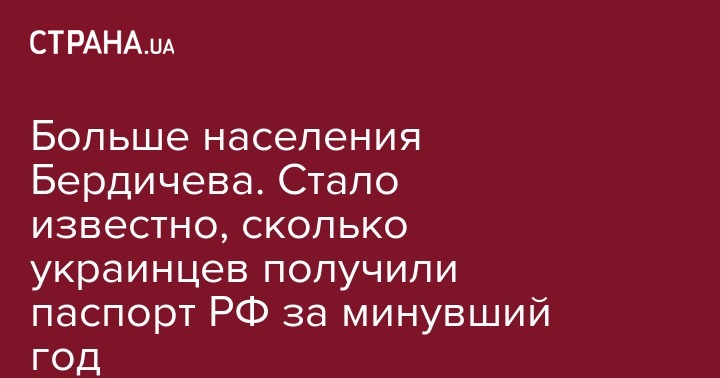 Стоит отметить, что согласно российскому законодательству, чтобы получить гражданство РФ украинцу нужно отказаться в уведомительном порядке от украинского гражданства. Соответственно, 83 081 гражданин Украины не просто получили паспорт РФ, но отказались от украинского гражданства (для сравнения, населения Бердичева - 78 518 человек, - прим.Ред.).