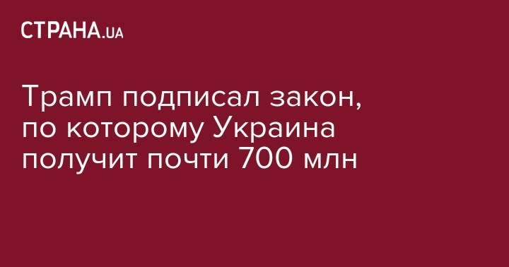 Президент США Дональд Трамп подписал законы, которые увеличивают финансовую помощь Украине почти до 700 миллионов долларов. Об этом сообщает посольство Украины в США в Facebook.