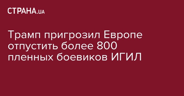 Президент США Дональд Трамп пригрозил Европе отпустить более 800 пленных боевиков, которые могут присоединиться к террористической группировке "Исламское государство" в Сирии, если страны не заберут их и не осудят. Об этом он написал в своем Twitter.