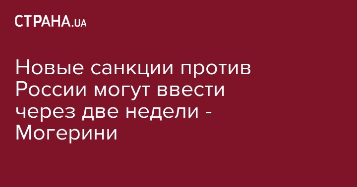 Решение о новых санкциях ЕС против России может быть принято в ближайшие две недели. Такое заявление 18 февраля сделала глава европейской дипломатии Федерика Могерини, сообщает "Интерфакс-Украина".