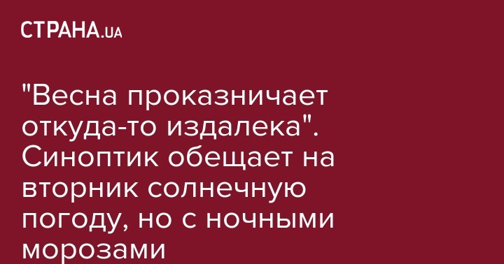 "А вот ближайшей ночью также ясное, незащищенное облаками небо, позволит охладить воздух до 4...8 градусов мороза. На Харьковщине и Сумщине иногда даже до -8...-10 градусов", - прогнозирует Диденко. Днем, благодаря солнцу, потеплеет до + 3...+7 градусов. На северо-востоке воздух не успеет прогреться - там ожидается +1...+2 градуса. Теплой будет погода в западных областях: ночью 0...+3, днем +5...+ 11 градусов. В южной части Украины ожидается ночью 0-5 мороза, днем +3...+7 градусов.