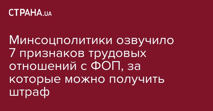 Минсоцполитики озвучило 7 признаков трудовых отношений с ФОП, за которые можно получить штраф