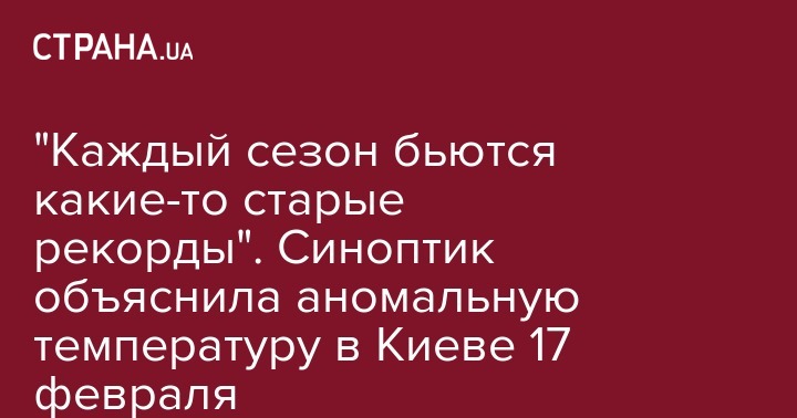 "Каждый сезон бьются какие-то старые рекорды. Как в спорте. Во-вторых, превышена средняя суточная. То есть, говорить, что это был самый теплый день 17 февраля - неправильно. Потому что самым теплым был этот день в 1974 году, около +11 градусов. А вчера было +9,9 градусов. Что, конечно, также высоко. А рекорд подтянула сравнительно теплая ночь. Вот и получилось: день теплый, но не самый теплый, ночь также тепла, однако также не рекордная. А вместе врезали рекордную среднюю суточную", - сообщила она.