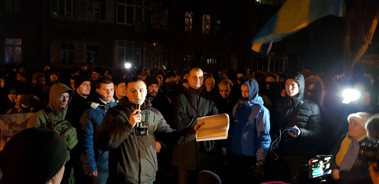 18:37  Несколько раз крикнули "Слава Украине - слава нации - смерть врагам" и начали скандировать "Авакова в отставку".