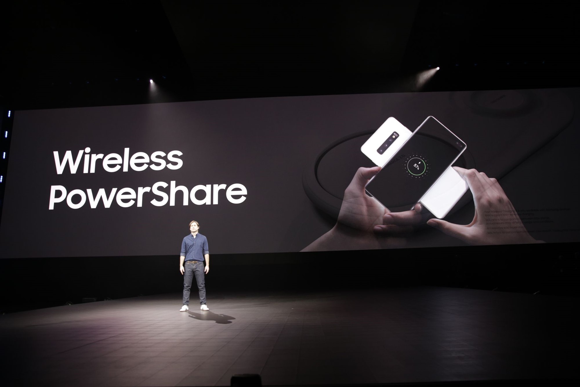 21:56  Новое поколение зарядки у Самсунг. Хотя и не слишком новое в принципе. Беспроводное питание. Новинка в том, что можно от этого телефона подзаряжать любой беспроводной девайс.