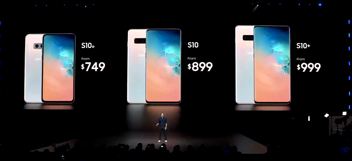 22:02  И младшая модель S10E - 5,8 дюймов экран. И 3100 аккумулятор. Цена стартует с 749 долларов.