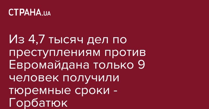 Из 4,7 тысяч дел по преступлениям против Евромайдана только 9 человек получили тюремные сроки - Горбатюк