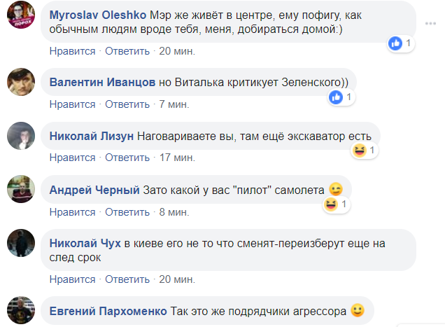 В комментариях под постом обсуждают реконструкцию. "Мэр же живет в центре, ему пофигу, как обычным людям вроде тебя, меня, добираться домой", - заметил блогер пропризедентского полка Мирослав Олешко.