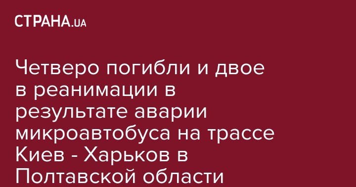 Около 18:00 во вторник, 19 февраля, в Полтавской области на 188 километре трассы Киев - Харьков перевернулся микроавтобус Volkswagen, следовавший из Варшавы в Запорожье. В результате ДТП погибли четыре человека, еще двое находятся в реанимации.
