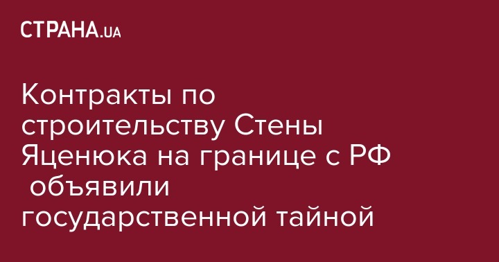 Государственная пограничная служба Украины объявила государственной тайной контракты по возведению "Стены" Яценюка на границе с РФ в течение 2015-2018 годов. Об этом со ссылкой на проект "Марлин" пишет "Экономическая правда"