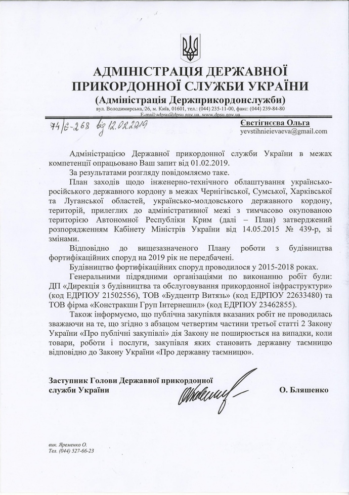 При этом среди генеральных подрядчиков по возведению фортификаций на границе с Российской Федерацией числится ООО "Стройцентр Витязь", директору и основателю которого еще в 2017 году НАБУ выдвинуло подозрение в растрате имущества в особо крупных размерах и подделке документов.