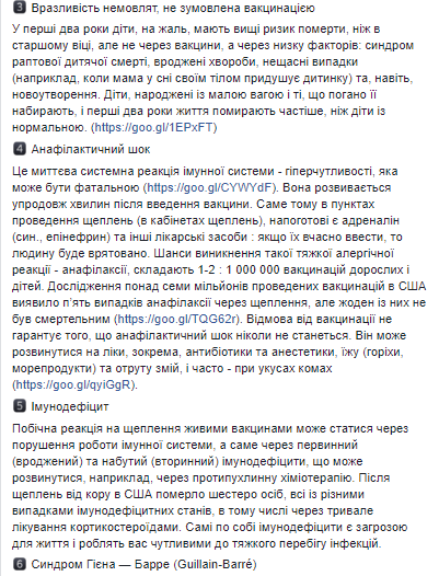 "Статистические данные миллионов людей, которые собирались учеными после вакцинации, свидетельствуют - вакцины не убивают. Вакцины сохраняют жизнь. То, что никогда не делают антивакцинаторы, когда распространяют искаженную информацию - они не анализируют данные. Чтобы судить о случаях смерти или болезни после прививки, следует зафиксировать и исследовать все случаи", - написала Ульяна Супрун.