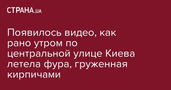 Появилось видео, как рано утром по центральной улице Киева летела фура, груженная кирпичами
