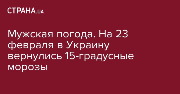 Сегодня, 23 февраля, почти на всей территории Украины существенно похолодает, однако осадков не ожидается. По данным Укргидрометцентра, холоднее всего сегодня будет в северных областях. Температура воздуха днем здесь будет колебаться от -5º до -7º, а ночью опустится до -15º (в Сумах).