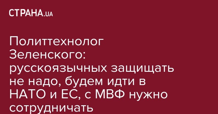 Политтехнолог Зеленского: русскоязычных защищать не надо, будем идти в НАТО и ЕС, с МВФ нужно сотрудничать