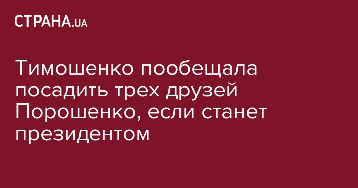 Лидер партии "Батькивщина" Юлия Тимошенко, которая рассказала о #Сетке Порошенко, заявила, что посадит трех его друзей в случае своей победы на президентских выборах. Об этом сообщает "Интерфакс-Украина".