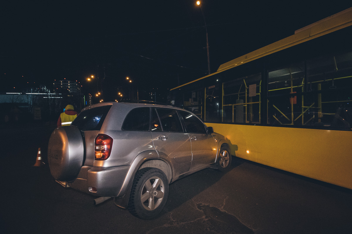 Прибывшие на место происшествия медики госпитализировали водителя внедорожника. По предварительным данным у него случился повторный инсульт. В результате аварии автомобиль Toyota получил серьезные повреждения. У внедорожника разбит правый бок. Троллейбус получил повреждения передней части.