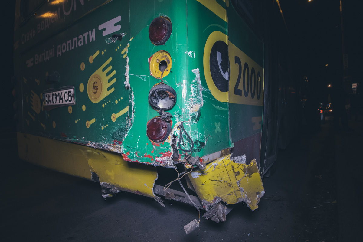 В Киеве авто врезалось в маршрутку и вылетело на остановку. Фото и видео