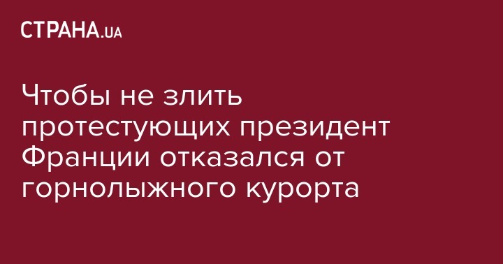 Президент Франции Эмманюэль Макрон не появится на горных курортах в 2019 году, чтобы не вызывать у "желтых жилетов" раздражение своим зимним отдыхом. Об этом сообщает в воскресенье, 24 февраля, газета Le Parisien.
