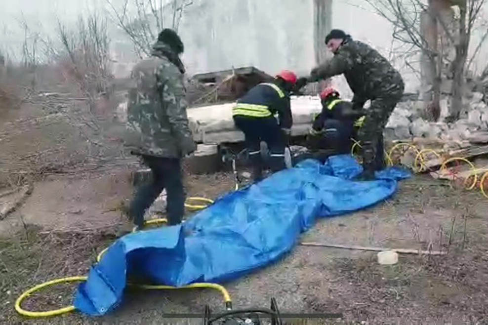 В 14:08 спасатели с помощью пневматических подушек и гидравлического оборудования подняли обломок разрушенной железобетонной стены и изъяли тело погибшего мужчины.