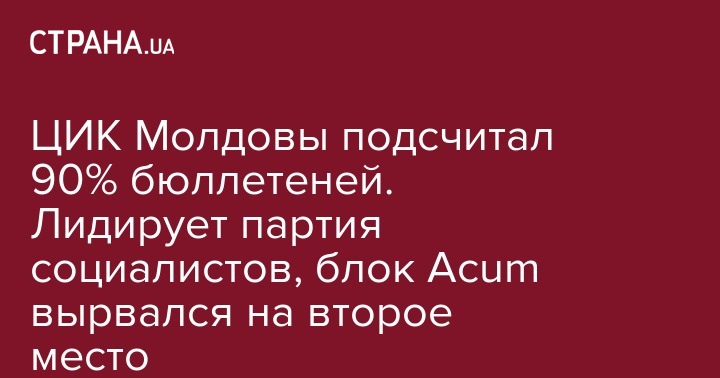Лидирует на выборах партия социалистов Республики Молдова, набирающая 31,69% голосов. Оппозиционный блок Acum ("Сейчас") набирает 25,06% голосов и выходит на второе место, опережая правящую Демократическую партию, за которую проголосовали 24,9% избирателей, передает ТАСС