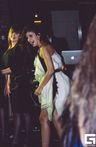 На снимках Джамала в коротком белом платье с обнаженными плечами поет на сцене ресторана. Исполнительница находится в хорошем настроении. Гости в момент ее выступления пьют, закусывают и аплодируют артистке.