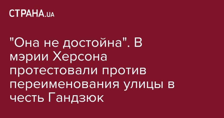 Митингующие недовольны тем, что раньше улицу, которую планируют переименовать в честь Гандзюк, отказались переименовывать в честь погибшего участника боевых действий Руслана Сторчеуса. "Она не достойна того, чтобы ее именем называли любую улицу в Украине, а тем более в Херсоне, в ее родном городе, где очень много плохого о ней помнят. А тем более улицу Лютеранскую, которую она не хотела, чтобы мы назвали именем погибшего героя Руслана Сторчеуса" - заявили женщины.