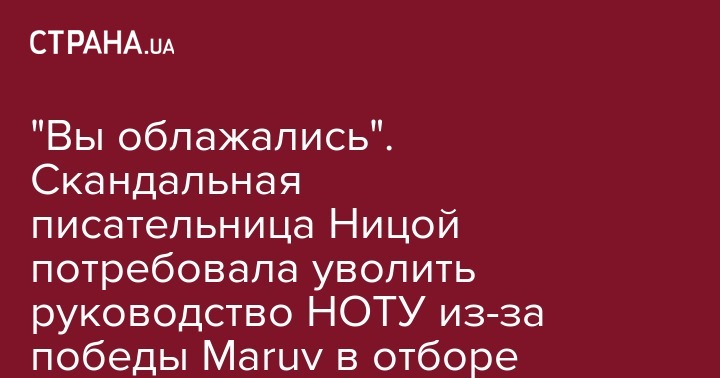 Скандальная писательница Лариса Ницой заявила, что в том, что в Нацотборе на Евровидение-2019 победила исполнительница Maruv, которая гастролирует по России, виновато руководство Национального общественного телевидения Украины ,которое "завело на конкурс кучу конкурсантов-коллаборационистов". Об этом она написала на своей странице в Facebook.