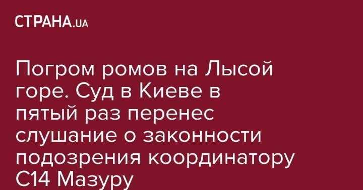 Ранее "Страна" сообщала, что суд отменил подозрение националисту Мазуру в нападении на табор ромов. 10 июля полиция сообщила координатору С14 Мазуру о подозрении по ч. 4 ст. 296 (хулиганство) Уголовного кодекса, а именно, в причастности к погрому поселения ромов, произошедшем в апреле 2018 года на Лысой горе в Киеве.
