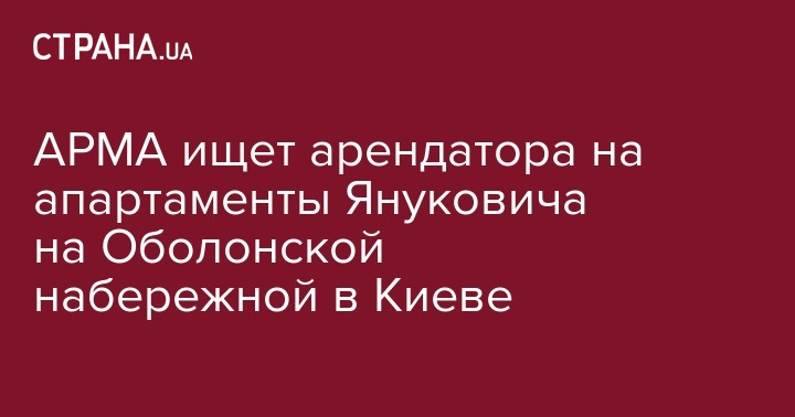 Нацагентство по выявлению, розыску и управлению коррупционными активами (АРМА) ищет арендатора арестованной квартиры экс-президента Виктора Януковича на Оболонской Набережной в Киеве. Об этом в интервью Украинским новостям сообщил директор АРМА Антон Янчук.