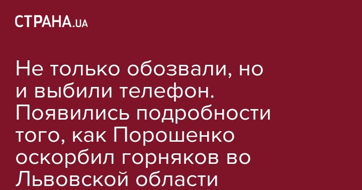 Пребывая с визитом в Червонограде Львовской области, президент Петр Порошенко не только оскорбил со сцены местного жителя, выкрик которого из толпы пришелся ему не по душе, но кроме этого, его охрана выбила из рук мужчины телефон, который упомянул долги по зарплатам шахтерам, снимая это на камеру.