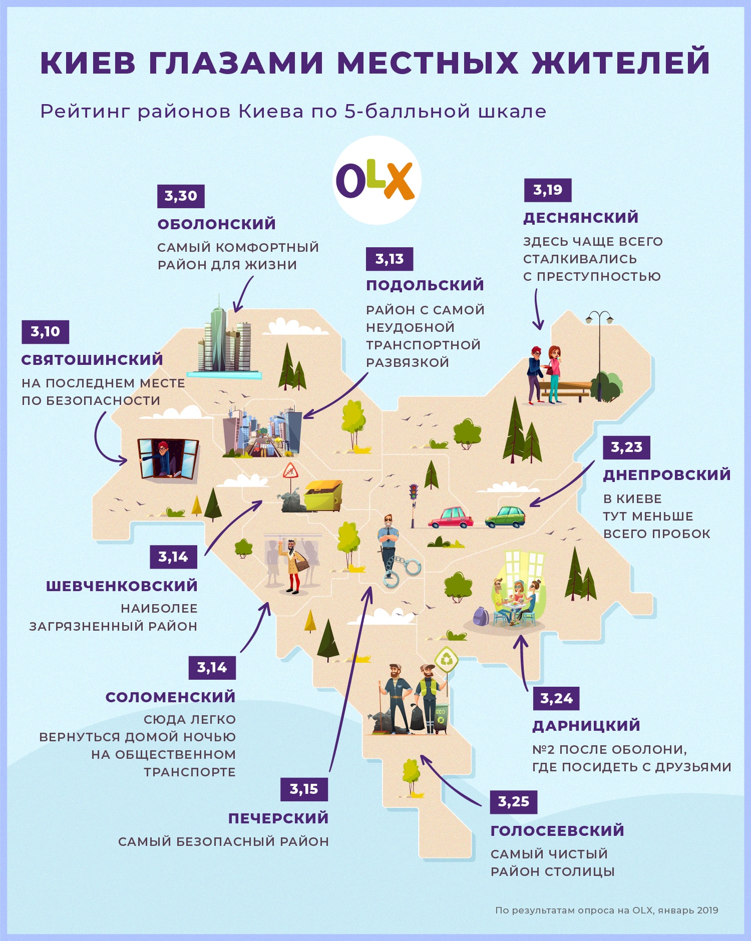 Самым удобным для проживания районом Киеве жители столицы считают Оболонский, а самым безопасным - Печерский. Об этом во вторник, 26 февраля, передает Информатор со ссылкой на данные опроса OLX среди 15 500 киевлян.
