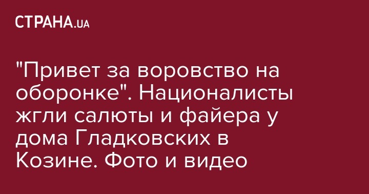 "Гладковским передали привет за воровство на оборонке. Салюты, файера, красная краска с "деньгами" у входа в усадьбу. Чудом не загорелся сам дом", - написал журналист Влад Красинский в Facebook.