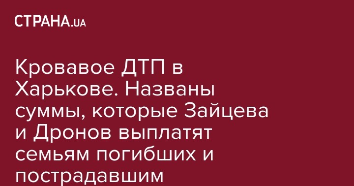 "Суд принял решение по гражданским искам, заявленным семьями погибших и пострадавшими о моральной компенсации. Родственники погибших просили суд по 1 млн грн за каждого погибшего, а пострадавшие в ДТП - от 100 до 500 тыс грн. для возмещения расходов на лечение. По решению суда Зайцева и Дронов должны солидарно выплатить почти 8 млн грн компенсации. Кроме того, Дронов должен выплатить 800 тыс. грн двум пострадавшим", - отметили в суде.